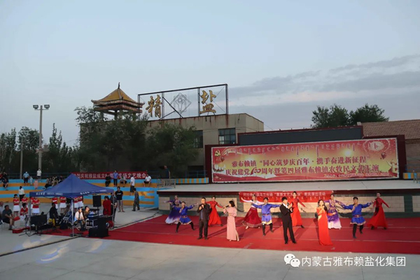 7月8日晚,阿右旗乌兰牧骑走进雅盐化集团公司,与企业联合举办消夏暨庆祝雅盐建场80周年文艺晚会。演出……