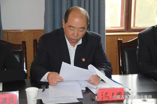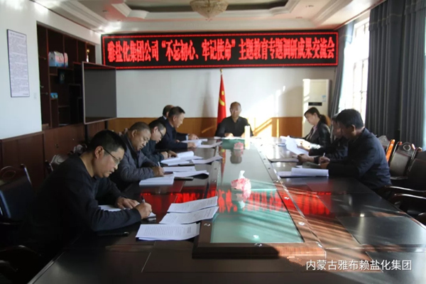 雅盐化集团公司党委于20191026日下午组织召开“不忘初心,牢记使命”主题教育调研成果交流会。会议由集团公司党委书记、董事长孙刚德主持,集团公司党委委员及生产技术部、企业管理部、采盐分厂、精盐分厂负责人参加会议。