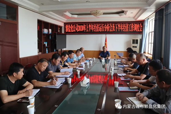 729,雅盐化集团公司召开2020年上半年经济运行分析会及下半年经济工作调度会,会议总结了上半年集团公司生产经营与计划指标完成情况,剖析存在的问题和不足,并对下半年工作进行了具体安排部署。集团公司领导班子成员、中层管理人员,各全资、控股公司主要负责人,派驻参股公司负责同志参加会议。集团公司党委书记、董事长孙刚德主持会议。