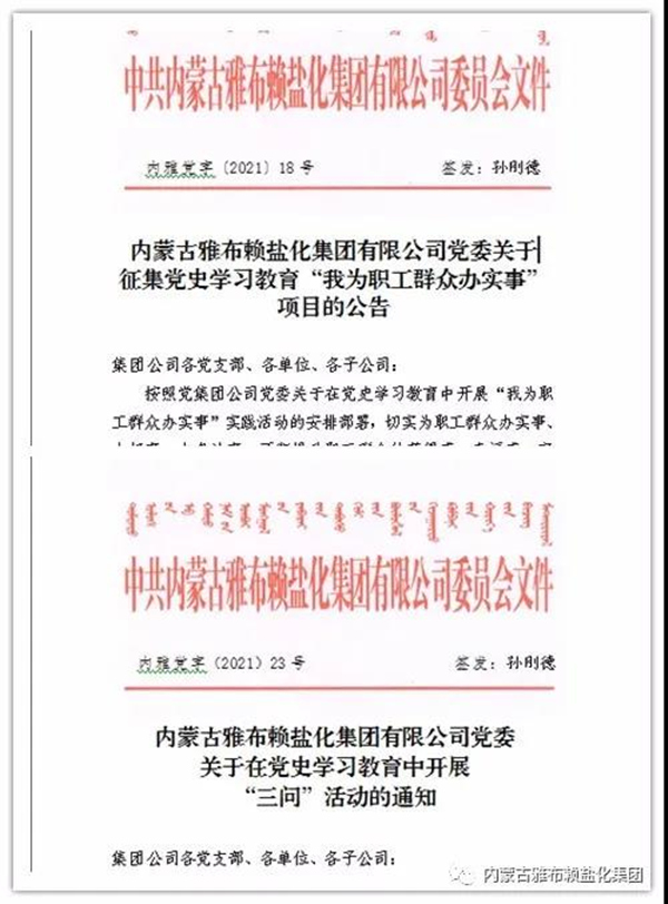 雅盐化集团公司自党史学习教育启动以来,始终坚持学做结合、以学促用,把“我为职工群众办实事”实践活动作为党史学习教育的着力点和落脚点,真心实意为职工群众办实事、办好事、解难事。通过开门纳谏、走访调研、座谈交流、网上征求意见等多种方式,问计于民、问需于民、问政于民,深入了解职工群众急难愁盼问题。