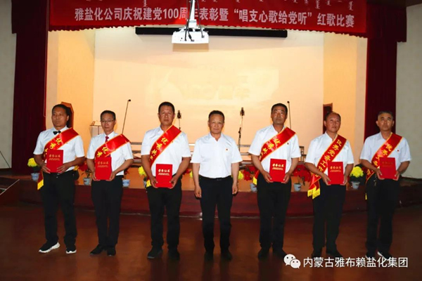 为庆祝中国共产党成立100周年,630日晚,雅盐化集团公司在职工文化中心隆重举行“永远跟党走”庆祝中国共产党成立100周年表彰暨“唱支心歌给党听”红歌比赛。集团公司全体党员、5支参赛队共200余人参加大会。