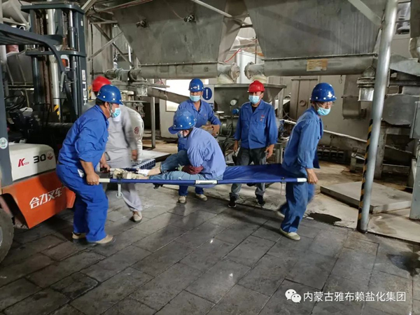 根据阿右旗应急管理局、市场监督管理局及集团公司安委会关于2022年“安全生产月”活动的安排,集团公司安全生产委员会组织各生产分厂、子公司开展了现场应急实战演练活动。 6月21日上午,采盐分厂在湖下再生盐2班生产现场开展一起因皮带机托辊脱落,导致操作人员受伤的现场应急处置实战演练活动。